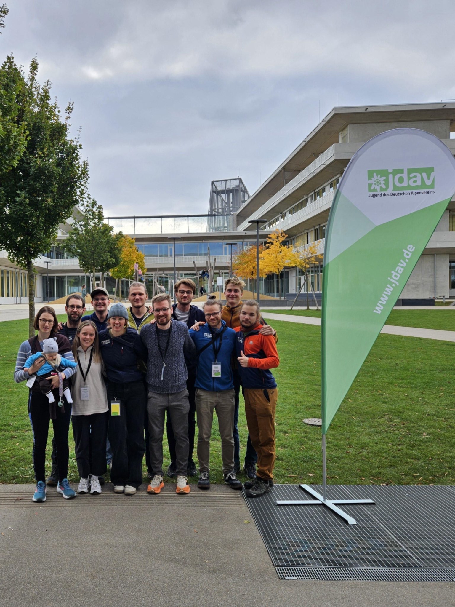 Am Freitag, den 10. Oktober, ging es für elf Delegierte der JDAV zur Bundesjugendversammlung nach München. Die Bundesjugendversammlung (BJV) ist die Vollversammlung der JDAV und damit das oberste Entscheidungsgremium. Sie kommt mindestens alle zwei Jahre zusammen. Insgesamt waren rund 400 Delegierte aus ganz Deutschland vor Ort, um gemeinsam über Themen wie Reservierungssysteme und Stornogebühren auf Hütten, Leistungssport, die Stärkung des Ehrenamts, internationale Jugendarbeit und Nachhaltigkeit im Verein zu debattieren, gemeinsame Positionen zu finden und Demokratie zu leben. Außerdem wurden die neuen stellvertretenden Bundesjugendleiter:innen gewählt und Berichte aus den letzten Jahren vorgetragen. Neben dem parlamentarischen Teil hatten wir ein wunderschönes Wochenende gemeinsam in München, mit wenig Schlaf, aber dafür einem traditionellen Besuch im Hofbräuhaus und einer legendären JDAV Party. Auch unsere jüngste Besucher:in (siehe Bild links) hat ihre erste BJV mit vielen neuen Eindrücken erfolgreich überstanden.